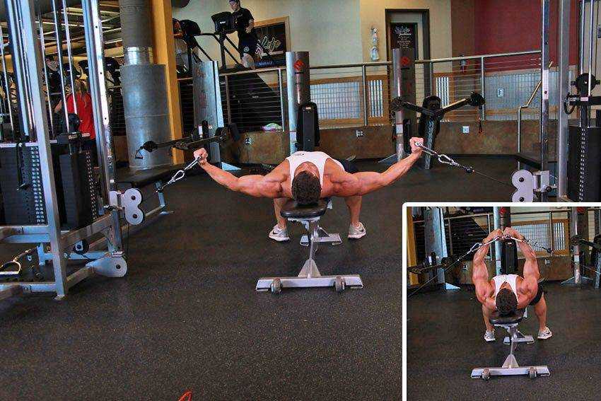 Итак, нам понадобиться скамья с наклоном в 30◦, и блочный кроссовер.