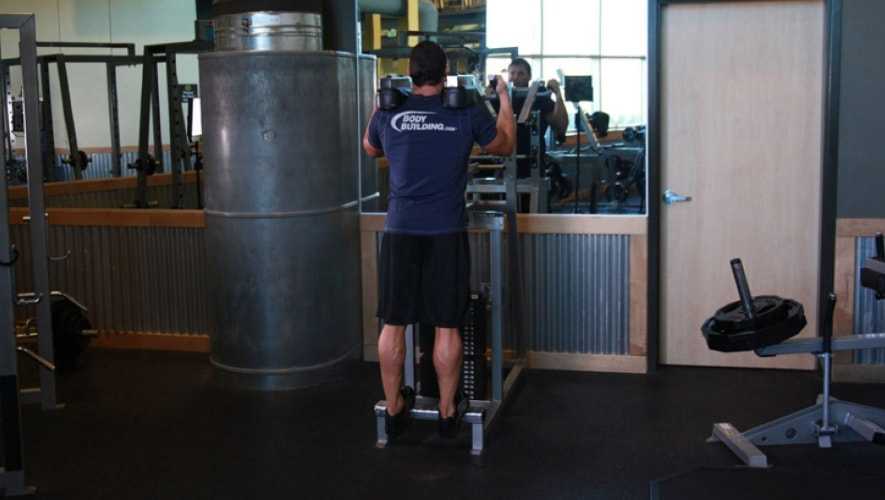 Данный тренажер очень прост в конструкции. Он состоит из платформы куда ставятся носки стоп. И рычага с двумя мягкими подушками, в которые мы упираемся плечами. Вес меняется путем перестановки ограничителя. То есть, выбираем нужное число блоков и устанавливаем его туда. Выполняя подъемы в тренажере, мы можем не переживать за устойчивость. Так как благодаря упору в подушки, мы фиксируем положение тела. Также можно работать в полную амплитуду, за счет того, что стопы стоят на возвышенности. И в нижней точке есть возможность опустить пятки максимально низко, тем самым растянув трехглавую мышцу голени. Но стоит учесть один факт. Так как вес давит сверху, возрастает нагрузка на позвоночник! Поэтому не стоит брать очень большой вес.