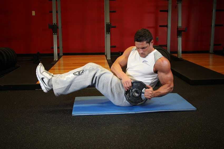 Классические ситапы можно выполнять с отягощением, например, блином небольшого веса. Для этого двумя руками необходимо удерживать блин по краям над грудной клеткой