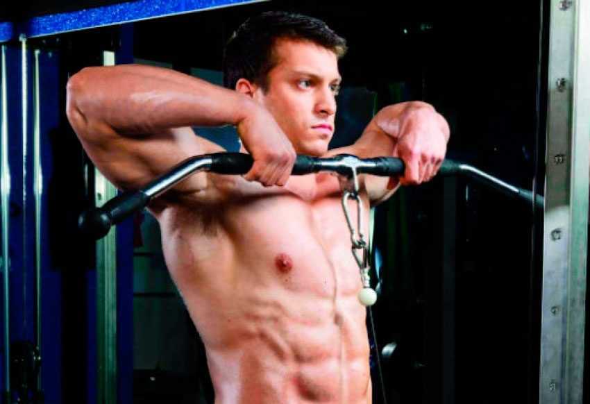 - Для правильного выполнения этой тяги нужно хорошее чувство мышц. В идеале движение начинается в плечевом суставе и начинается за счет задней дельты, а локти сгибаются потом. Те, кто сгибает локти сначала, отдают часть нагрузки в бицепс;