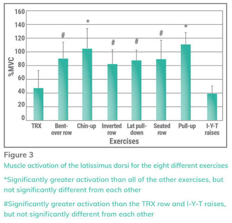 Полученные результаты подтвердили, что одно упражнение не может вызывать высокую активацию всех выбранных групп. Если вы ограничены во времени, то доктор Поркари рекомендует выполнять тягу в наклоне, она в значительной степени активирует три из пяти тестируемых мышц и на втором месте для оставшихся (см таблицу ниже).