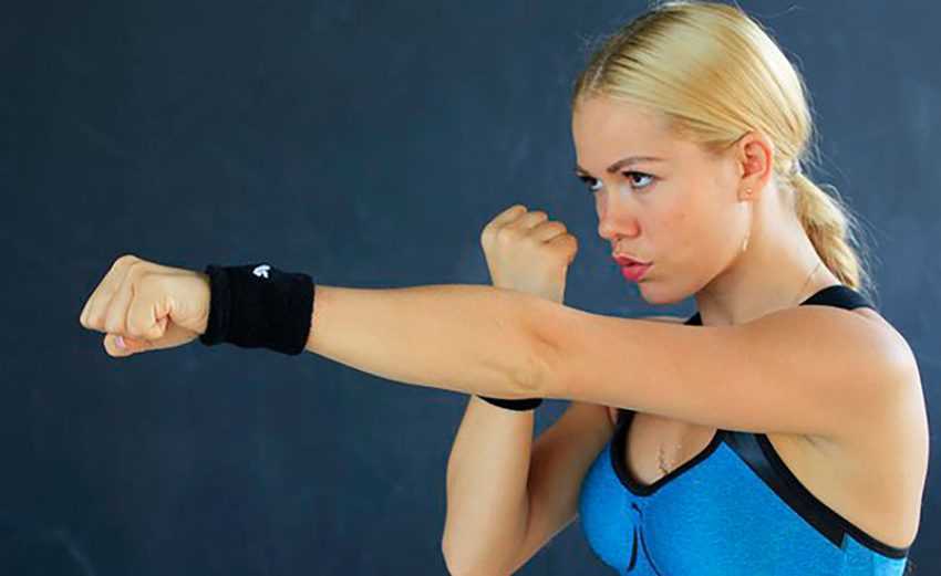 При отработке ударов руками желательно использовать боксерскую грушу. При ее отсутствии для увеличения силы удара в тай-бо для женщин можно взять в руки килограммовые гантели.