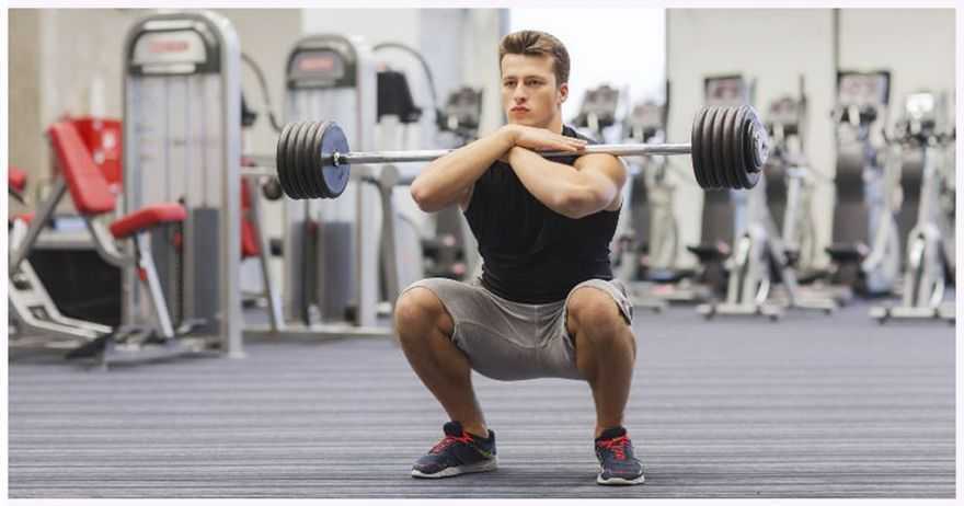 - Приседания со штангой на плечах – 3 подхода по 10-12 раз.