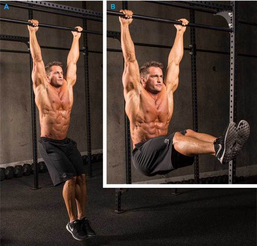 Для выполнения упражнения повисните на перекладине, взявшись за нее средним или широким хватом. Поднимите ноги (прямые или согнутые в коленях), чтобы образовался прямой угол между ними и корпусом. Вернитесь в исходное положение.