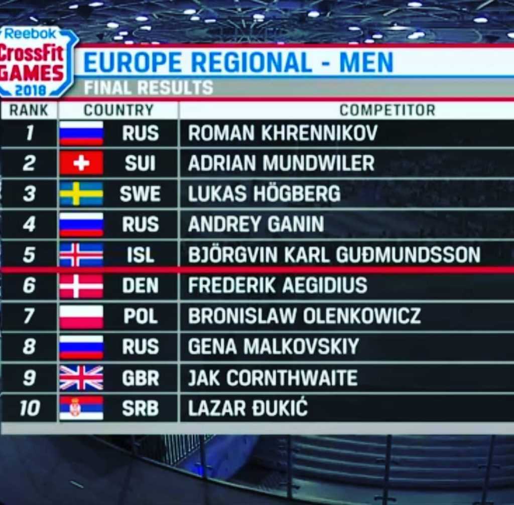 По итогам двух соревновательных дней Ганин был на 5-й строчке, буквально в шаге от выбывания. Всё решили последние 2 эвента, где атлет занял 1 и 5 места. Сразу поднявшись на 4-ю строчку лидерборда, Андрей потеснил неоднократных участников Игр Карла Гудмундссона и Фредерика Эгидиуса (@frederikaegidius).