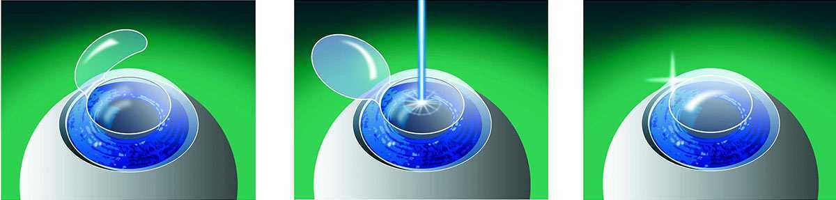 - формирование роговичного лоскута из поверхностных слоев роговицы;