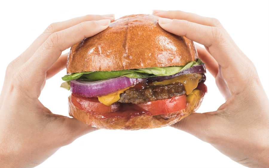- Продукты из фаст-фудов. В эту категорию относятся различные гамбургеры, бутерброды, хот-доги, шаурма и прочее. Впрочем, во многих заведениях быстрого питания в настоящее время можно встретить «здоровое меню» — бутерброды с зеленью, овощами, салаты.