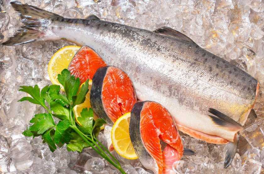 - Голец. Менее жирный — до 6%. Уступает горбуше по количеству витаминов, калия, железа, йода. Содержит больше кальция, магния, фосфора. Горбуша быстрее помогает улучшить гормональный фон, но голец эффективнее в борьбе с остеопорозом.
