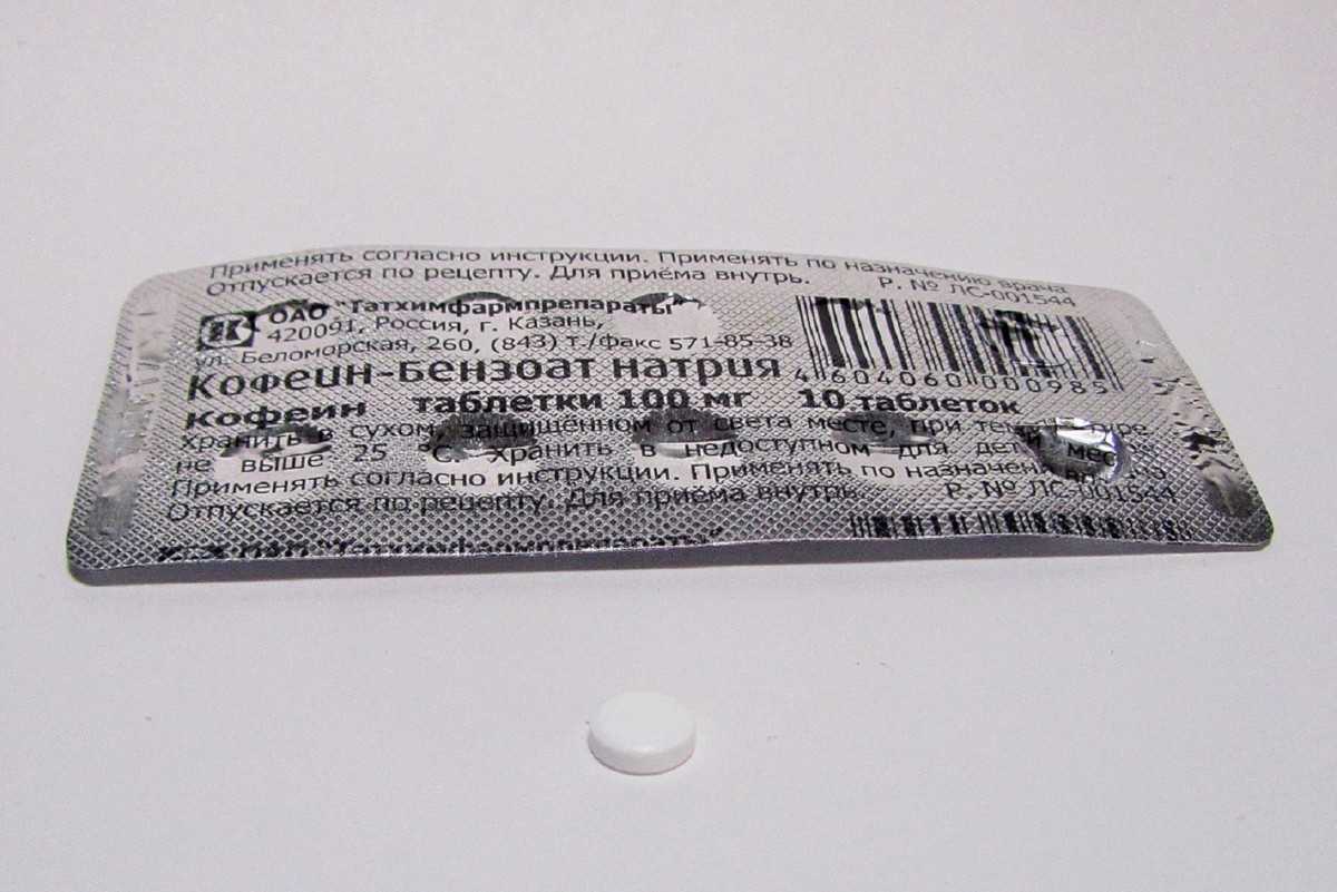 - Одна таблетка кофеин-бензоата натрия может иметь 100 и 200 миллиграмм, в зависимости от дозировки, указанной на упаковке.