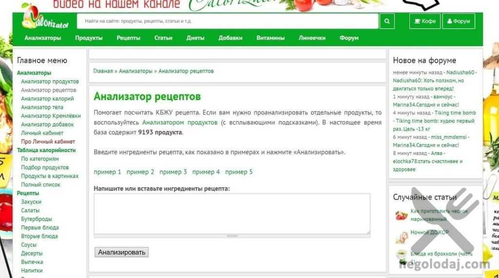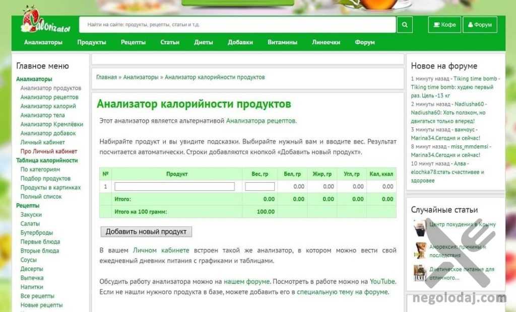 Первым в списке будет сайт Calorizator. Это один из топовых ресурсов по тематике похудения и питания. Его ежемесячная аудитория около 3 миллионов человек. В данном случае нас интересует один из его бесплатных сервисов “Калькулятор калорийности рецептов онлайн”.