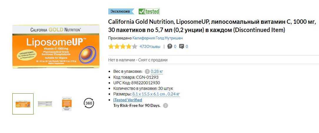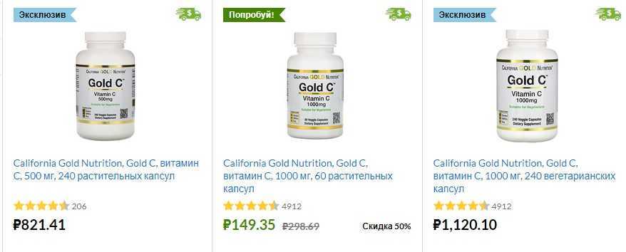На iHerb можно купить оригинальную продукцию Калифорния Голд Нутришен, по самой малой цене среди конкурентов. Доставка есть бесплатная, на сайте более 500 отзывов на витамин С от этого производителя.