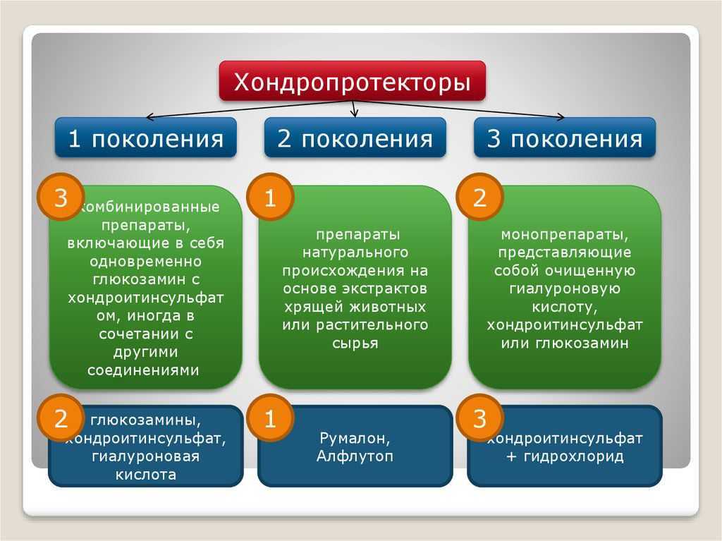 дисков и т. д.). На основании этого выделяют 3 поколения хондропротекторов:
