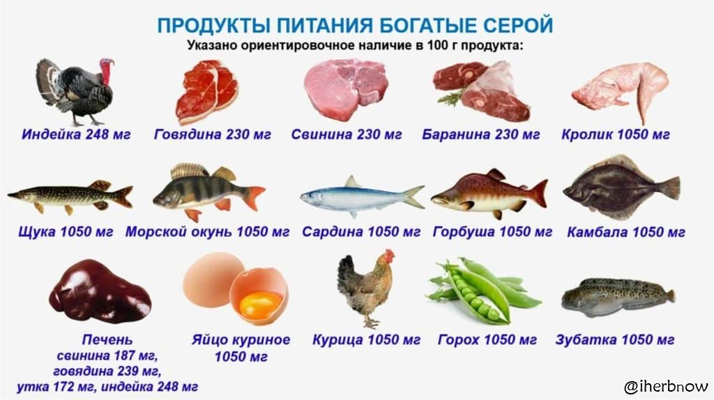 Учитывая, что сера является элементом нескольких аминокислот, есть резон говорить, что источниками сульфура также являются продукты животного происхождения. В частности, это разные виды мяса, яйца, сыр, молоко. Самые узнаваемые серосодержащие растения: горох, капуста белокачанная, брокколи, цветная, брюссельская, китайская и другие. Минимальная суточная потребность в сере составляет – 2 г. Но есть одно предостережение, при приготовлении пищи и пастеризации сера уменьшается. В то время как MSM устойчива к перепадам рН и температуры, она водорастворима, легко испаряется и превращается в газ. Поэтому, при приготовлении продуктов, она просто превращается в пар. Пастеризация снижает содержание MSM примерно на 50 процентов. Итак, для того, чтобы гарантировать, что вы получаете MSM из любой пищи, она должна быть сырой или минимально обработанной насколько, что редко достижимо для мясных и рыбных продуктов. Поэтому прием MSM в виде добавок может быть более предпочтительнее.