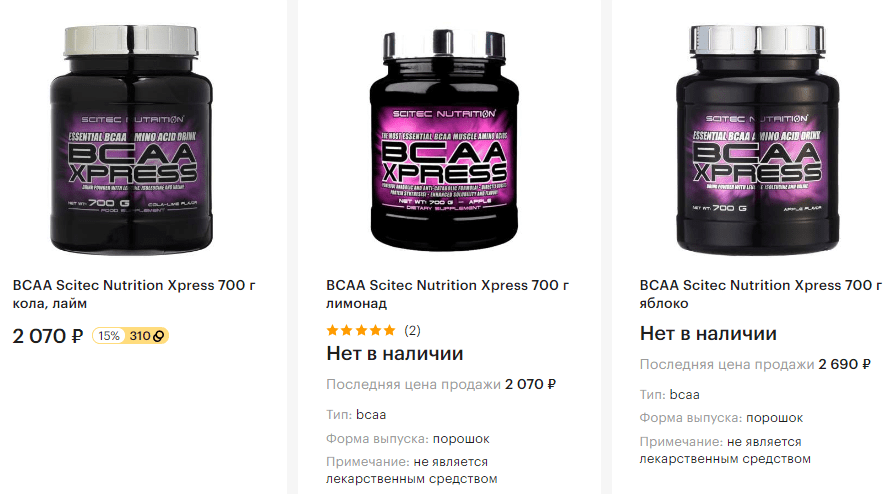 Несмотря на такое количество положительных свойств БЦАА, популярность этой добавки в последние годы снижается, что связано с невысокой рациональностью ее использования. Как мы говорили в начале статьи, нормально поесть значительно дешевле, чем использовать дорогостоящие добавки. Профессиональные спортсмены постоянно пьют аминокислоты, поскольку спонсоры снабжают их ими бесплатно. Цена BCAA высокая: 300 г обойдется в 700 рублей. А в зависимости от производителя и объема стоимость упаковки доходит до 5000 рублей и выше.