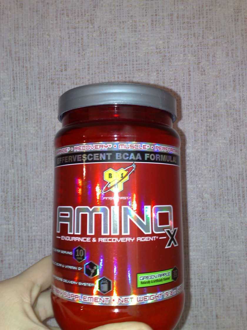 Amino X от BSN (2:1:1). В унции порошка 10 ветвей триады, плюс таурин и цитруллин. Усваивается за 10 минут, тонизирует, вкус смягчен ароматизаторами, что добавляет аллергенности препарату. Стоит 1200 рублей за 345 г, 1700 за 435 г и 2500 за 1010 г.