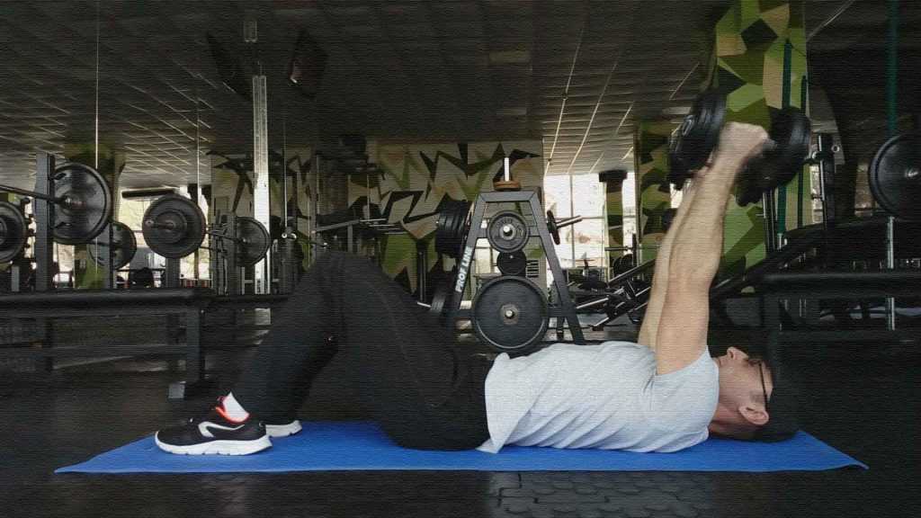 Если у Вас нет скамейки для жима лежа, не беда! Можно выполнять его прямо на полу или на степ-платформе, или выполнять обычные отжимания от пола.