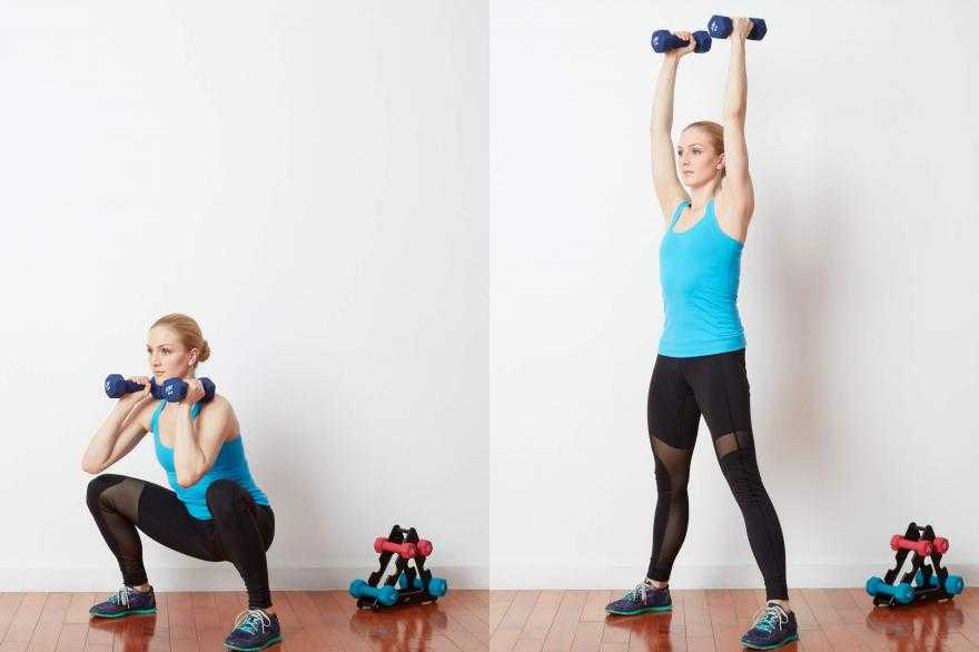 См. также: приседания с гантелями на груди, асимметричные приседания с гантелями,