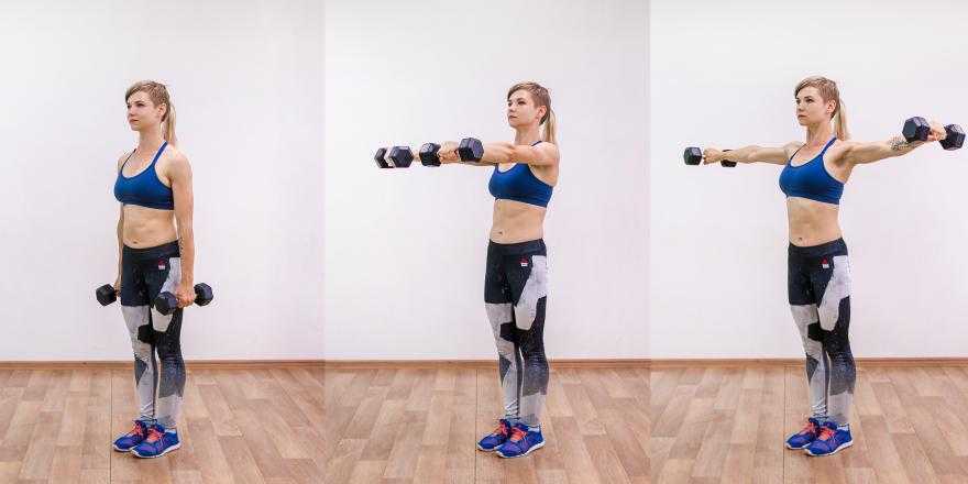Упражнения с гантелями на плечи позволят сформировать передний, задний и средний пучки дельтовидных мышц.