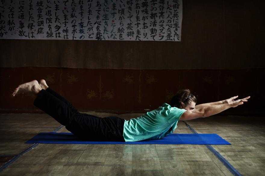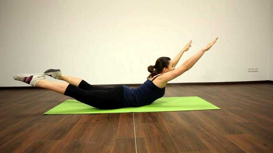 При всей простоте выполнения такое упражнение дает отличный результат, оно помогает сделать спину крепче и повышает выносливость. Для этого нужно лечь на живот на пол или коврик (любую твердую, ровную поверхность), руки вытянуть вперед, ноги держать ровно. Затем делается медленный, глубокий вдох, при этом, верхние и нижние конечности поднимаются вверх. Желательно задержаться в таком положении на несколько секунд, затем плавно выдохнуть, вернувшись в прежнюю позу.