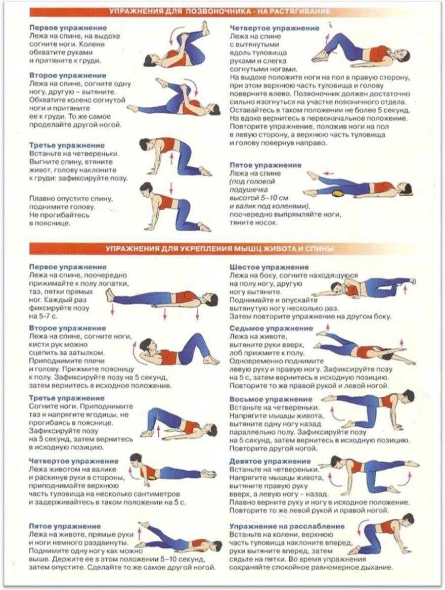 Следующие 5 упражнений, направленные на мышцы грудного, лопаточного, поясничного и нижнего отдела спины, могут быть включены в комплекс ежедневных занятий.